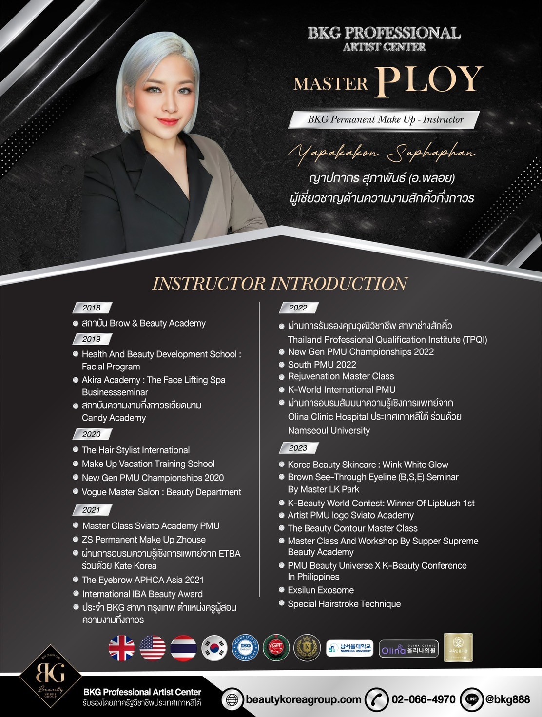 ผู้เชี่ยวชาญด้านความงามสักคิ้วกึ่งถาวร 2018-ปัจจุบัน อาจารย์ประจํา BKG Professional Artist Cente