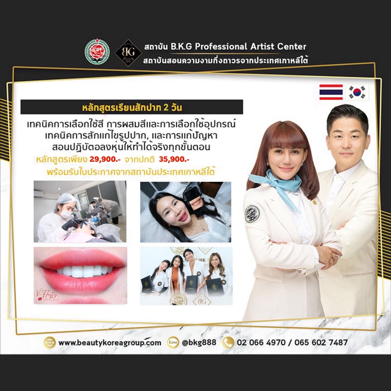 ความพิเศษของหลักสูตร!! สถาบันบีเคจีได้รวบรวมเทคนิคการฝังสีปากจากประสบการณ์ 12 ปี ให้คุณได้เรียนทริคเน้นๆเพียง 2 วัน คุณก็สามารถปฏิบัติงานได้จริงได้การันตี!! หลังเรียนจบสามารถรับลูกค้าได้เลย การเรียนการสอนของสถาบันเน้นการปฏิบัติงานจริงพร้อมสอบลงคนจริงไม่จำกัด เรียนพร้อมรับอุปกรณ์ประกอบอาชีพหลังเรียนจบ ปรึกษาได้ตลอดเข้าทบทวนฟรีไม่มีหมดอายุ รับใบประกาศนานาชาติ 2 ใบ ภาษาไทย -ภาษาอังกฤษ - ภาษาเกาหลี